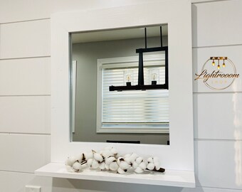 Rustic Distressed Mirror With Shelf Small Mirror Bathroom Mirror