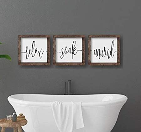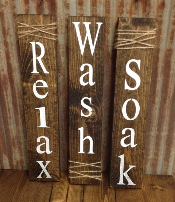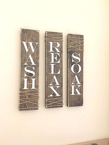 Amazon Com Wash Soak Relax Signs Set Of 3 Farmhouse Bathroom Decor Rustic Bathroom Signs Bath Sign Handmade