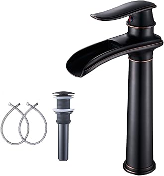 Ggstudy Oil Rubbed Bronze Bathroom Faucet Single Handle One Hole Waterfall Farmhouse Bathroom Vessel Sink Faucet