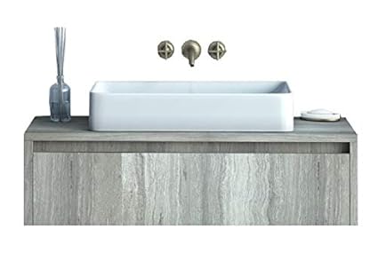 Floating Wall Mount Bathroom Vanity Sink Set Modern Farmhouse Grey Oak Finished Vanity With Raised White Vessel Sink 36 Inch Amazon In Home Kitchen