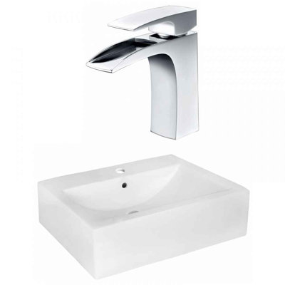 Royalpurplebathkitchen Xena Farmhouse Semi Recessed Ceramic Rectangular Vessel Bathroom Sink With Faucet And Overflow Wayfair