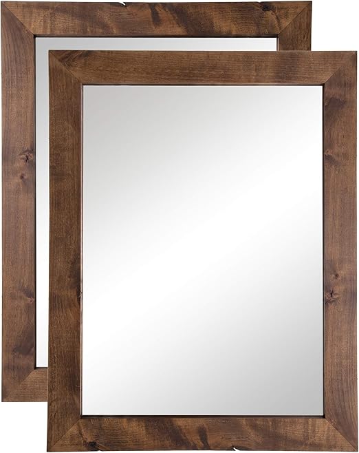 Farmhouse Bathroom Vanity Mirror 24x31 Walnut Finish Set Of 2 Drakestone Designs