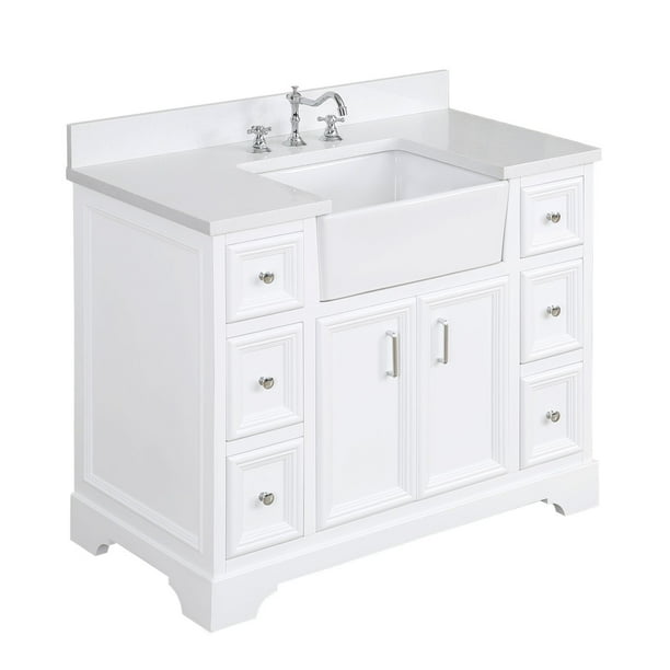 Zelda 42 White Farmhouse Bathroom Vanity With Quartz Top And