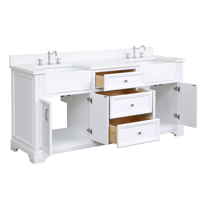 Zelda 72 White Double Farmhouse Bathroom Vanity With Quartz Top