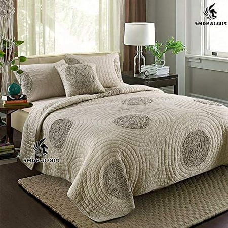 Brandream Queen Size Taupe Bed Quilt Set Luxury Coverlet Set