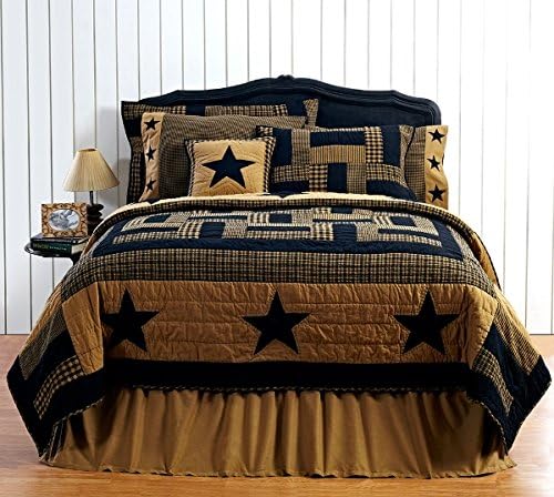 Black And Tan Rustic Farmhouse Bedding 3 Pc Dakota Star Quilt