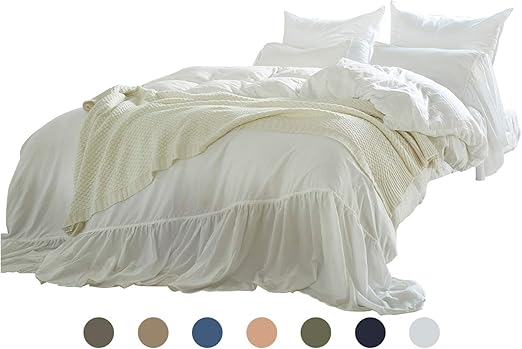 Susybao Duvet Cover Set Queen 3 Piece 100 Washed Cotton Farmhouse