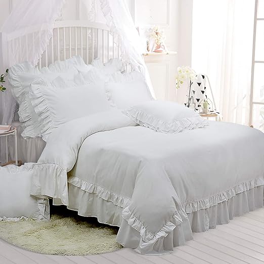 Amazon Com Tealp Farmhouse Bedding Set White Bed Skirt Cotton