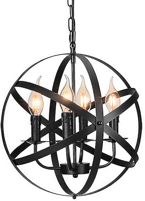 Sphere Nordic Classic Chandelier Black Metal Round Lights Globe