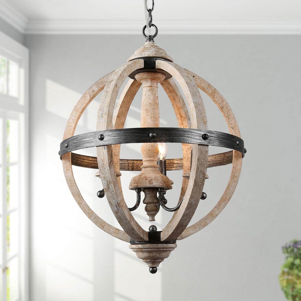 Lnc 16 In 3 Light Rustic Weathered White Wood Chandelier Globe