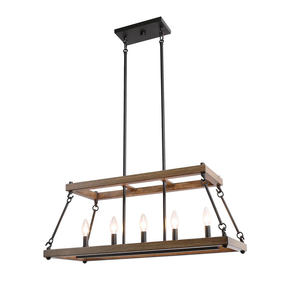 5 Light Farmhouse Chandelier Black Wood Finish Iron Chandelier