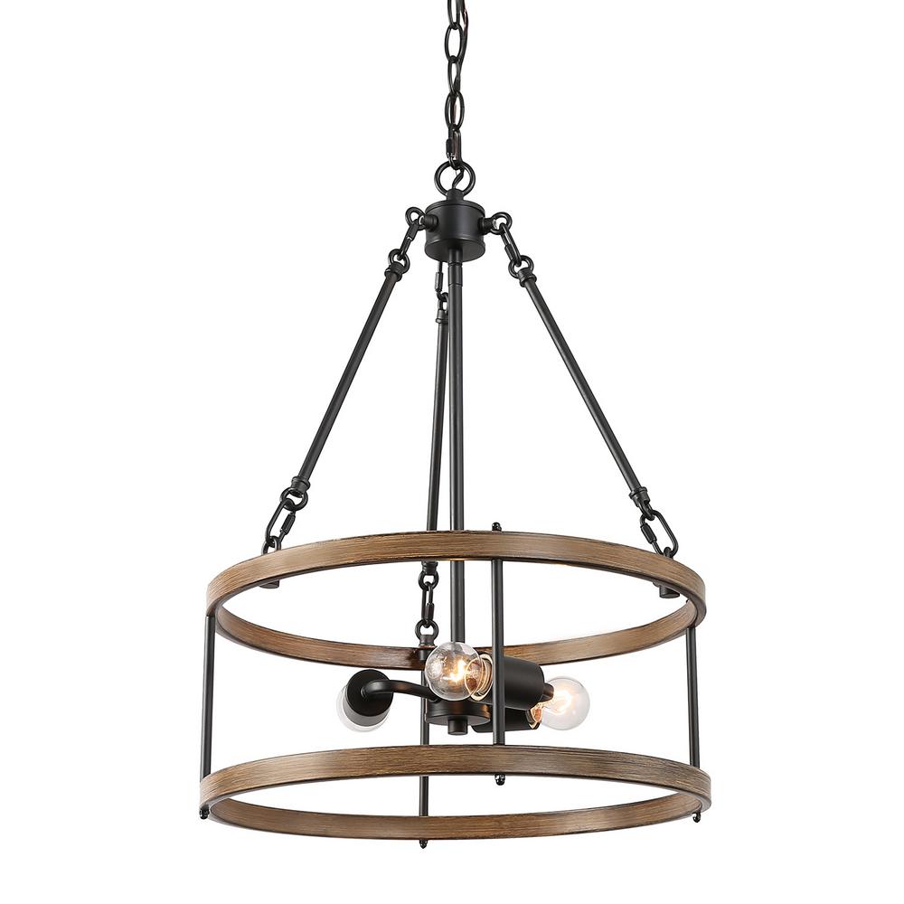 Giluta Wood Metal Chandelier Farmhouse Drum Pendant Light With