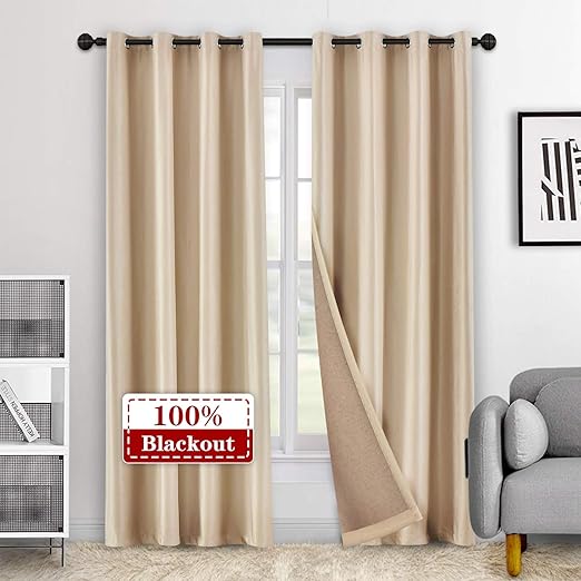 Amazon Com Beige 100 Blackout Curtains 102 Inches Long