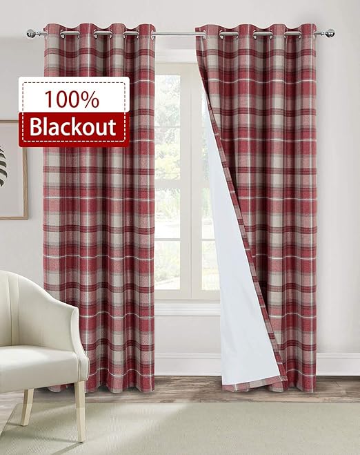 Amazon Com Alexandra Cole Red Plaid Curtains 95 Inches Length