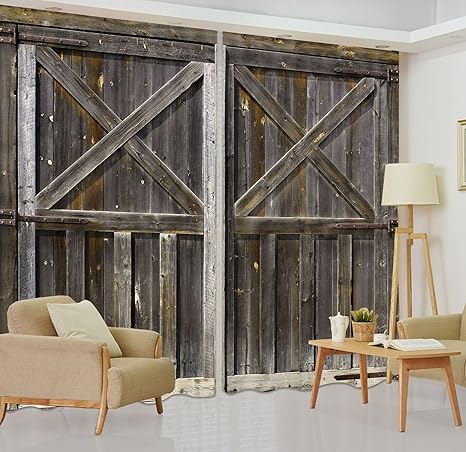 Amazon Com Lb Rustic Barn Door 3d Window Curtains For Living Room