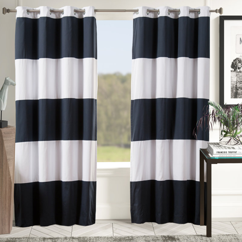 Riviera Striped Linen Cotton Rod Pocket Blackout Curtain Navy
