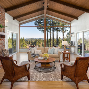 75 Beautiful Farmhouse Living Room With A Brick Fireplace Pictures