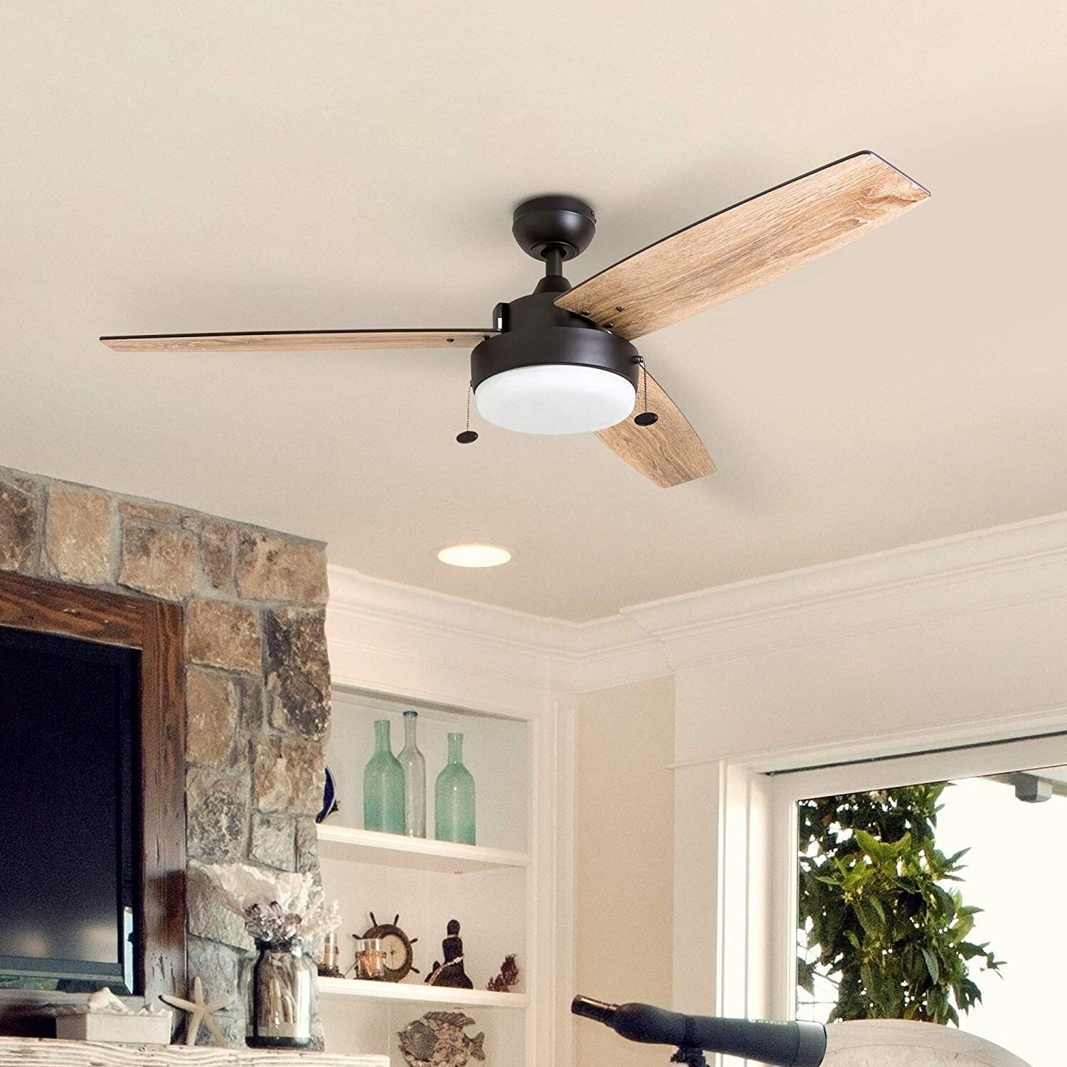 Farmhouse Ceiling Fan Light Fixture Kit Pull Chain Drop Bronze