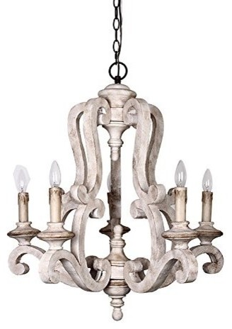 Shop Farmhouse Distressed Antique White 5 Light Wood Chandeliers