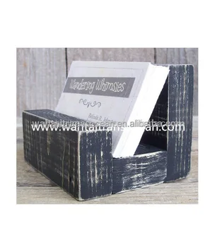Rustic Wood Business Card Holder Style Country Office Decor Stand