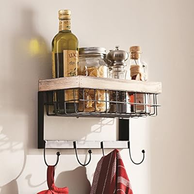 Rustic Metal Basket Wall Rack Farmhouse Chic Kitchen Decor Amazon