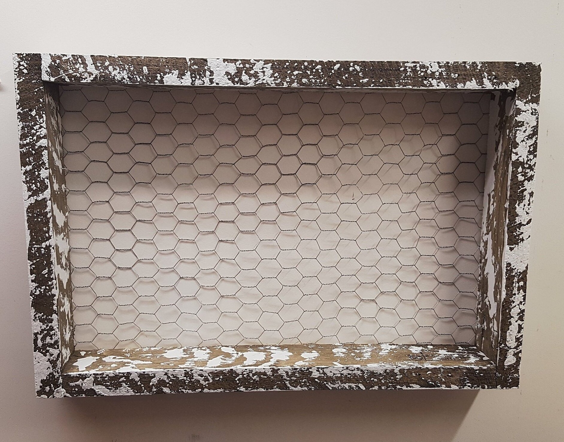Farmhouse Shelf Chicken Wire Frame Home Decor Rustic Wall Etsy