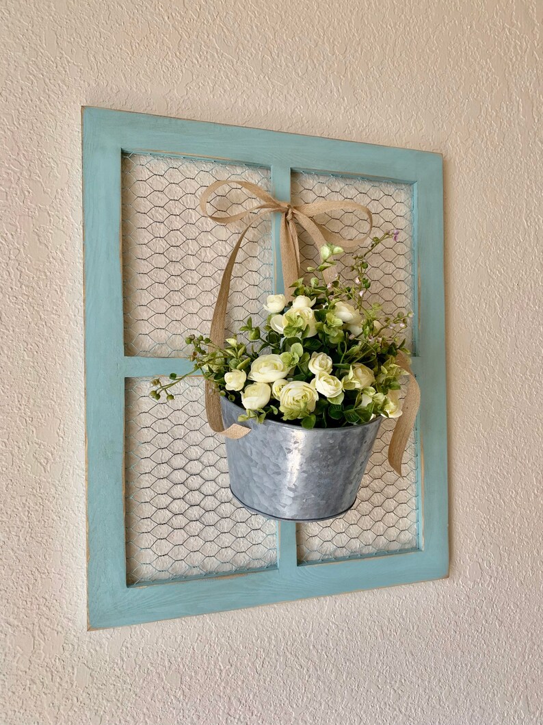 Window Frame Chicken Wire Decor Farmhouse Wall Decor Chicken