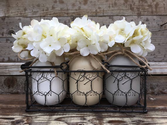 Chicken Wire Caddy With Jars Farmhouse Table Decor Rustic Etsy