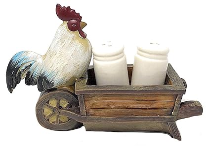 Rooster Farmhouse Salt Pepper Shaker Chicken Wire Basket Country