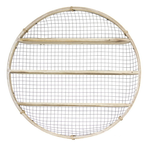 Rustic Wood And Chicken Wire Round Wall Shelf Kirklands