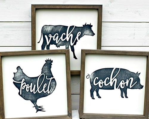 Amazon Com French Rustic Farmhouse Chicken Pig Cow Framed Wood