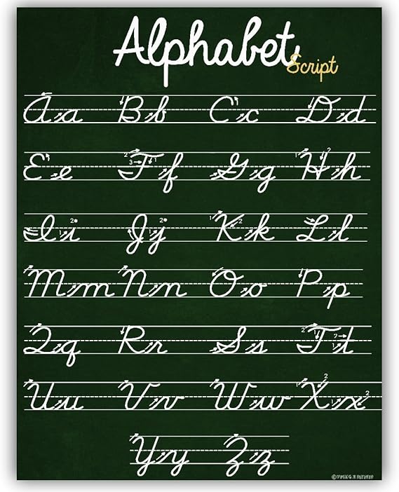 Amazon Com Abc Cursive Script Alphabet Poster Size Small Chart
