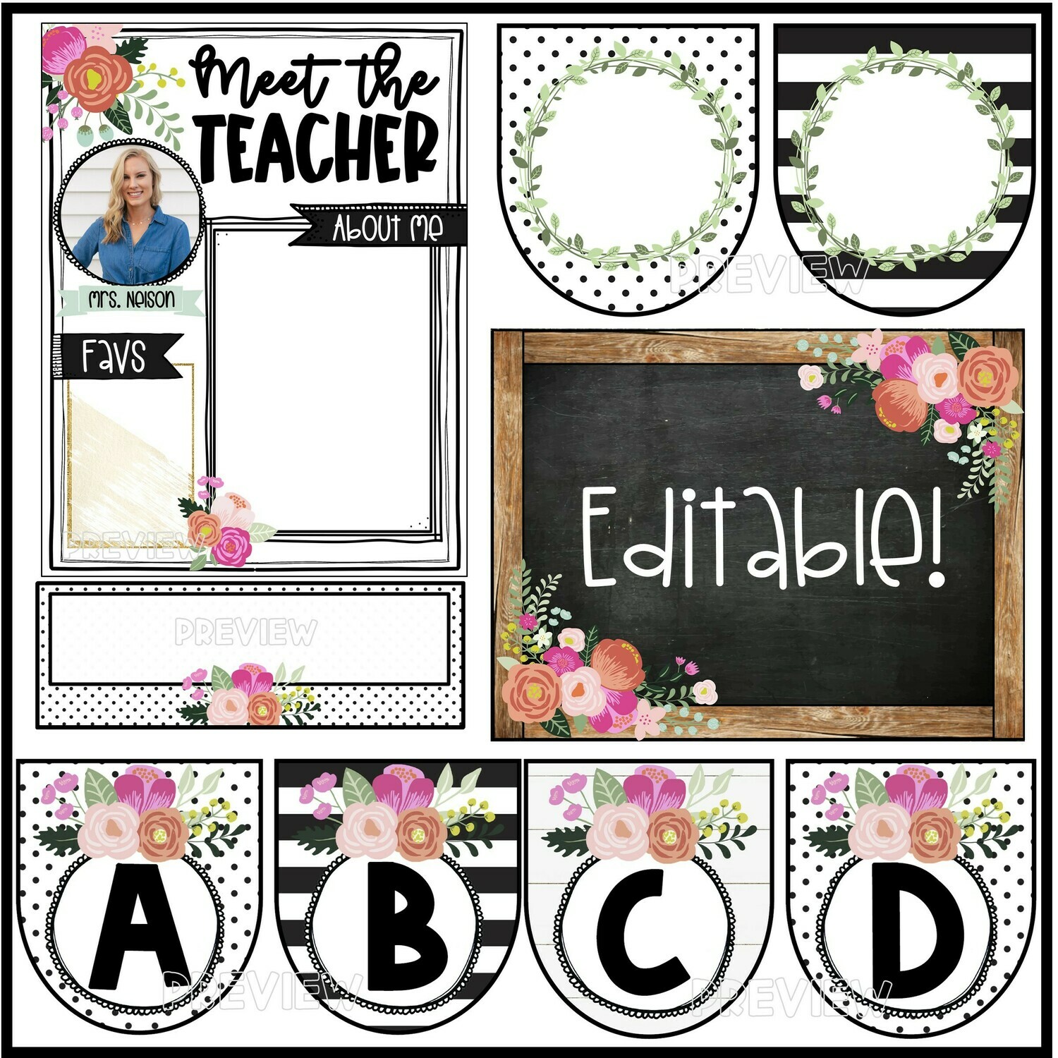 Farmhouse Floral Classroom Decor Bundle