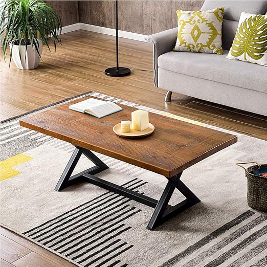 Farmhouse Coffee Table Easy Assembly Nature Wood Tea Table Rustic