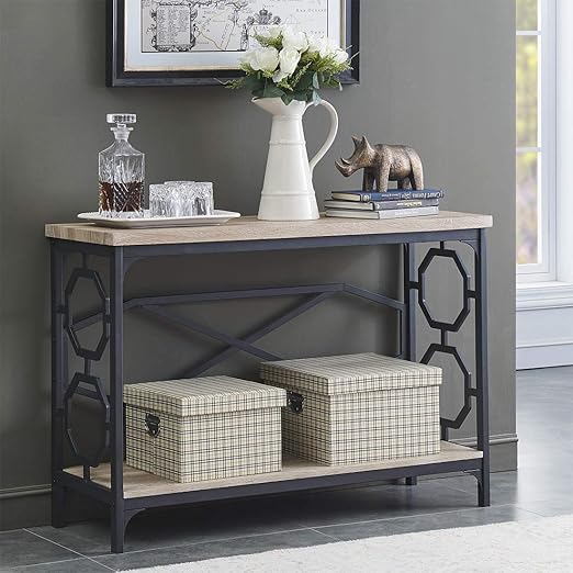 Modern Farmhouse Console Table Behind Sofa Accent Metal Wood