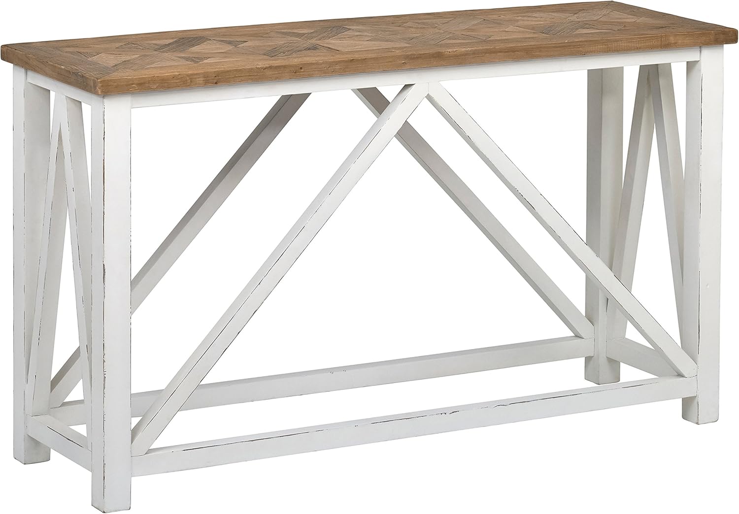 Rustic Farmhouse Console Table Vintage Blanc Finish With Wood