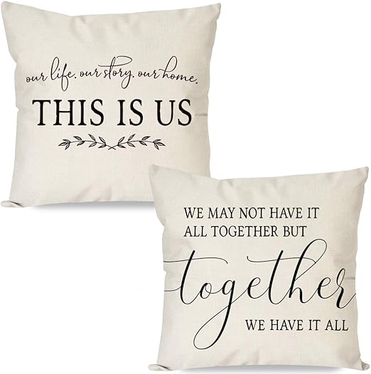 Amazon Com Pandicorn Set Of 2 Farmhouse Throw Pillows Covers 18x18 With This Is Us Together We Have It All For Home