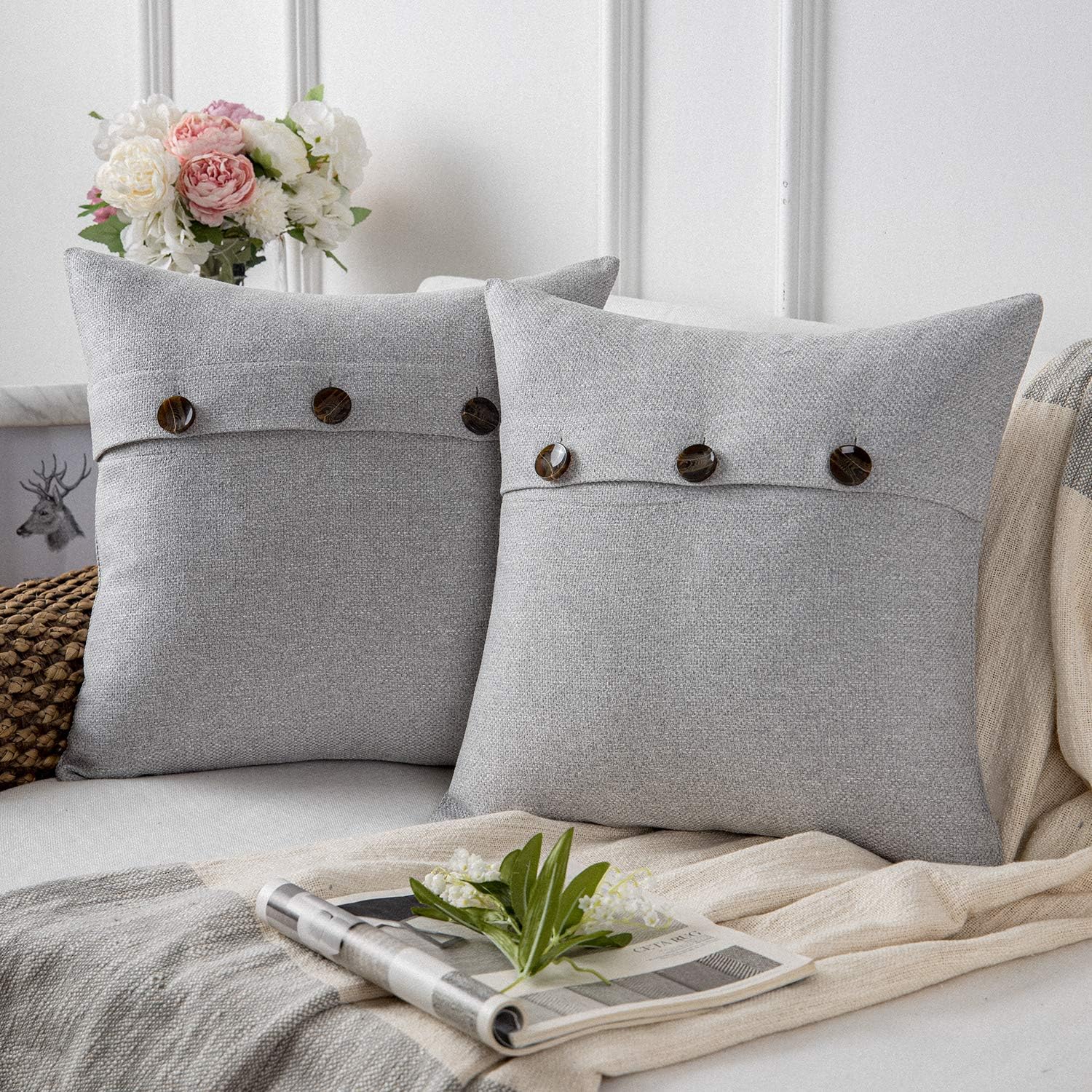 Amazon Com Phantoscope Farmhouse Throw Pillow Covers Triple Button Vintage Linen Decorative Pillow Cases For Couch