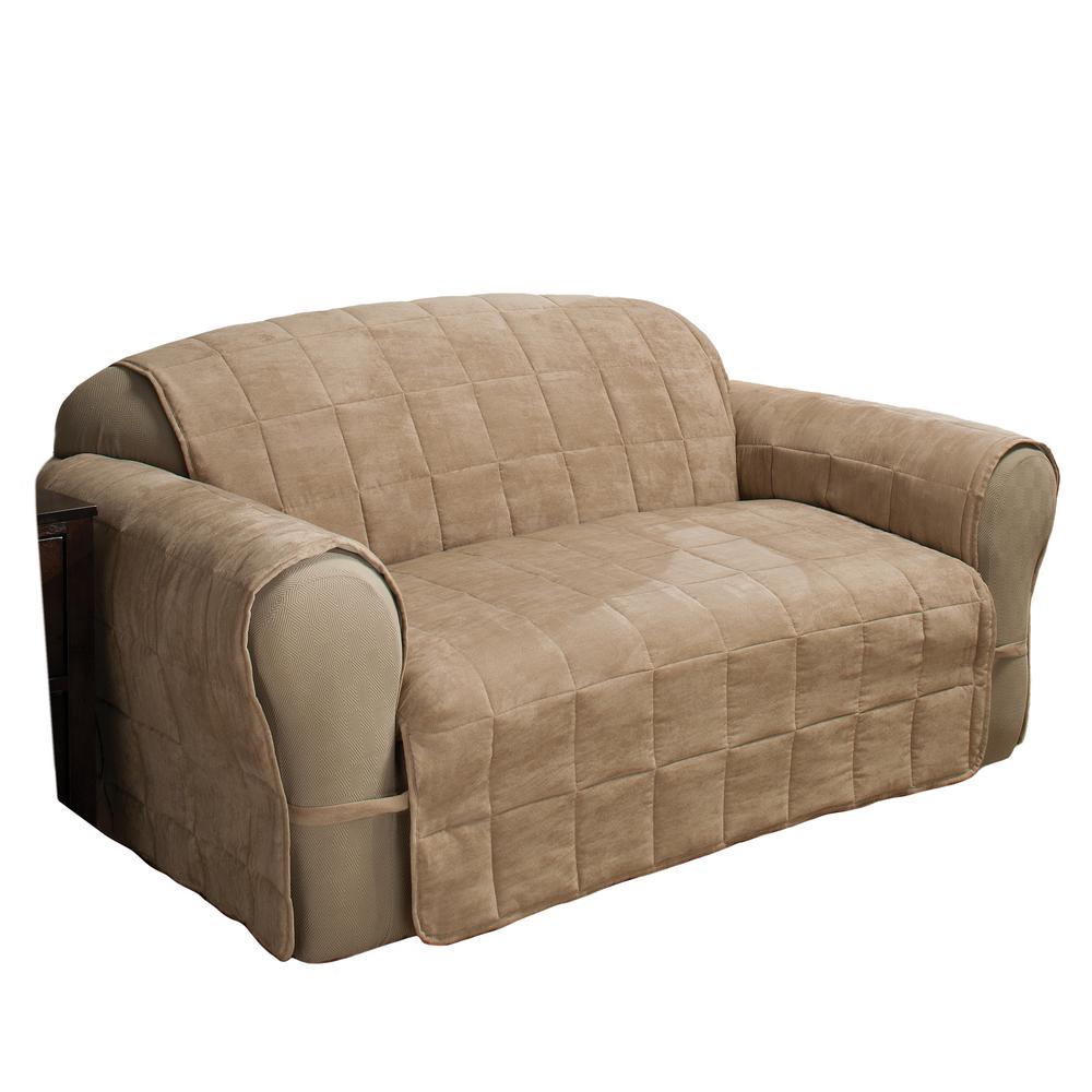Dual Reclining Loveseat Slipcover Farmhouse Twill Taupe Sure Fit Cover