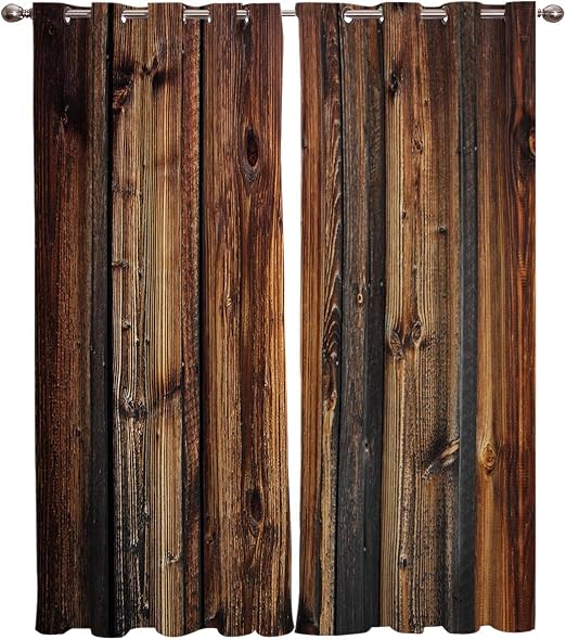 Amazon Com Blackout Window Curtain 2 Panels Rustic Brown Wood