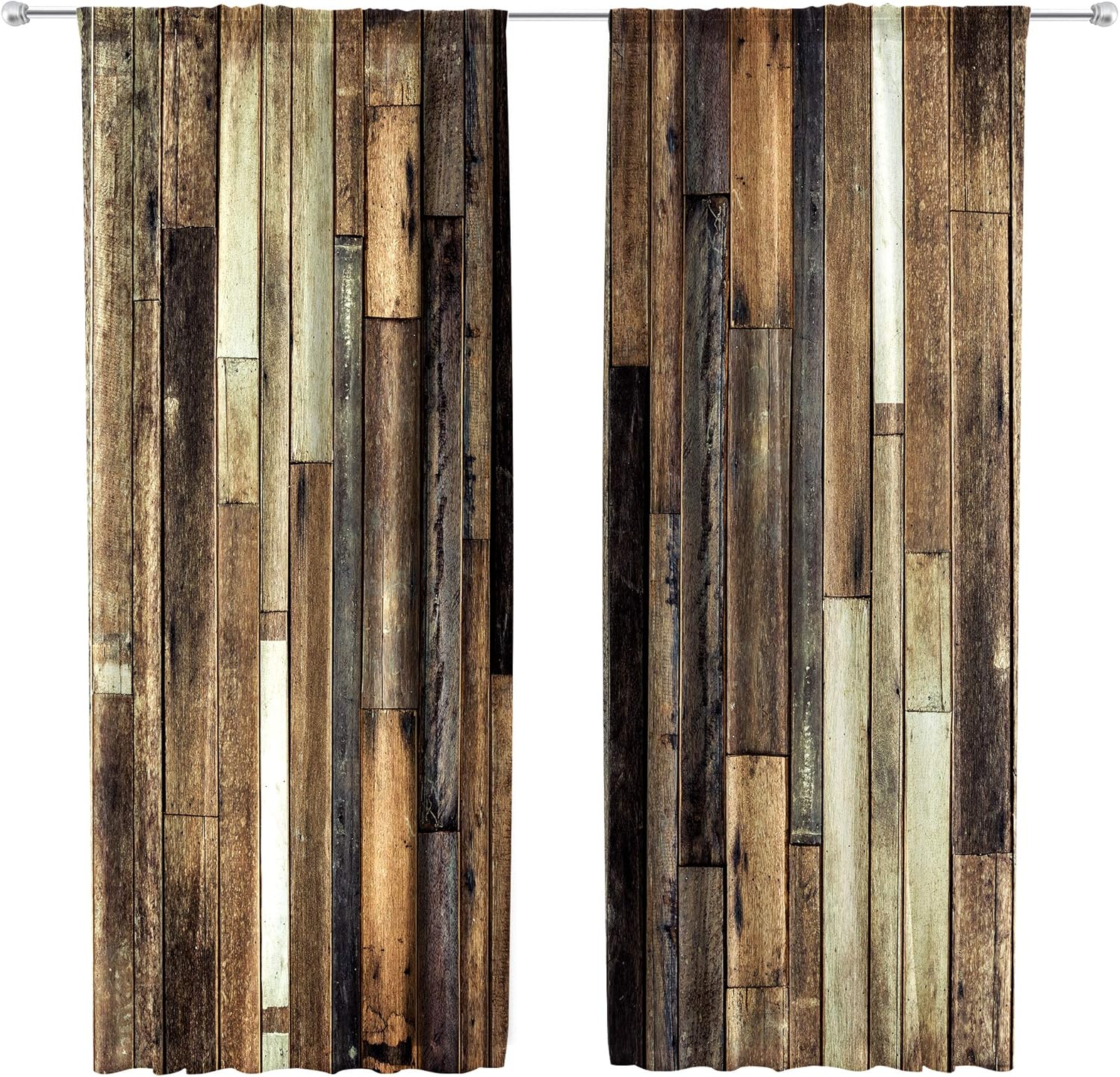 Amazon Com Riyidecor Wooden Plank Curtains Rod Pocket Woods Brown