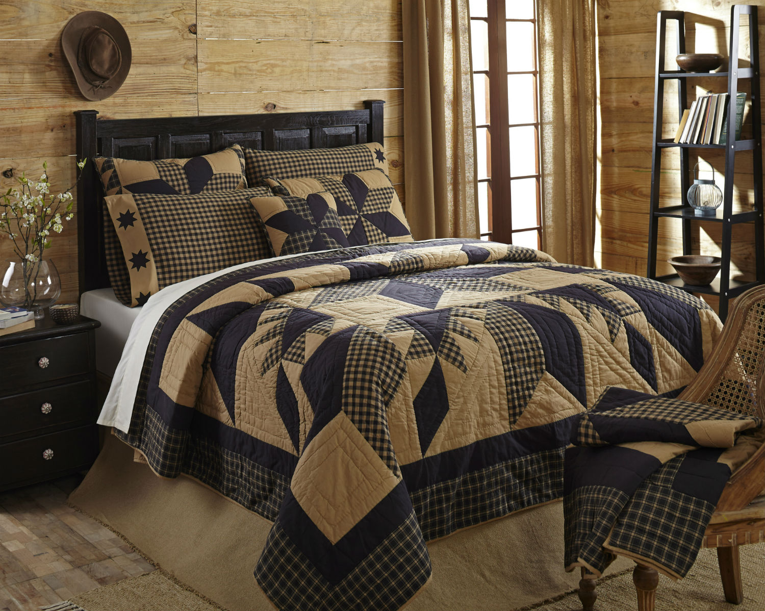 Black Country Bedding Lansing Black Quilt Cotton Star Patchwork