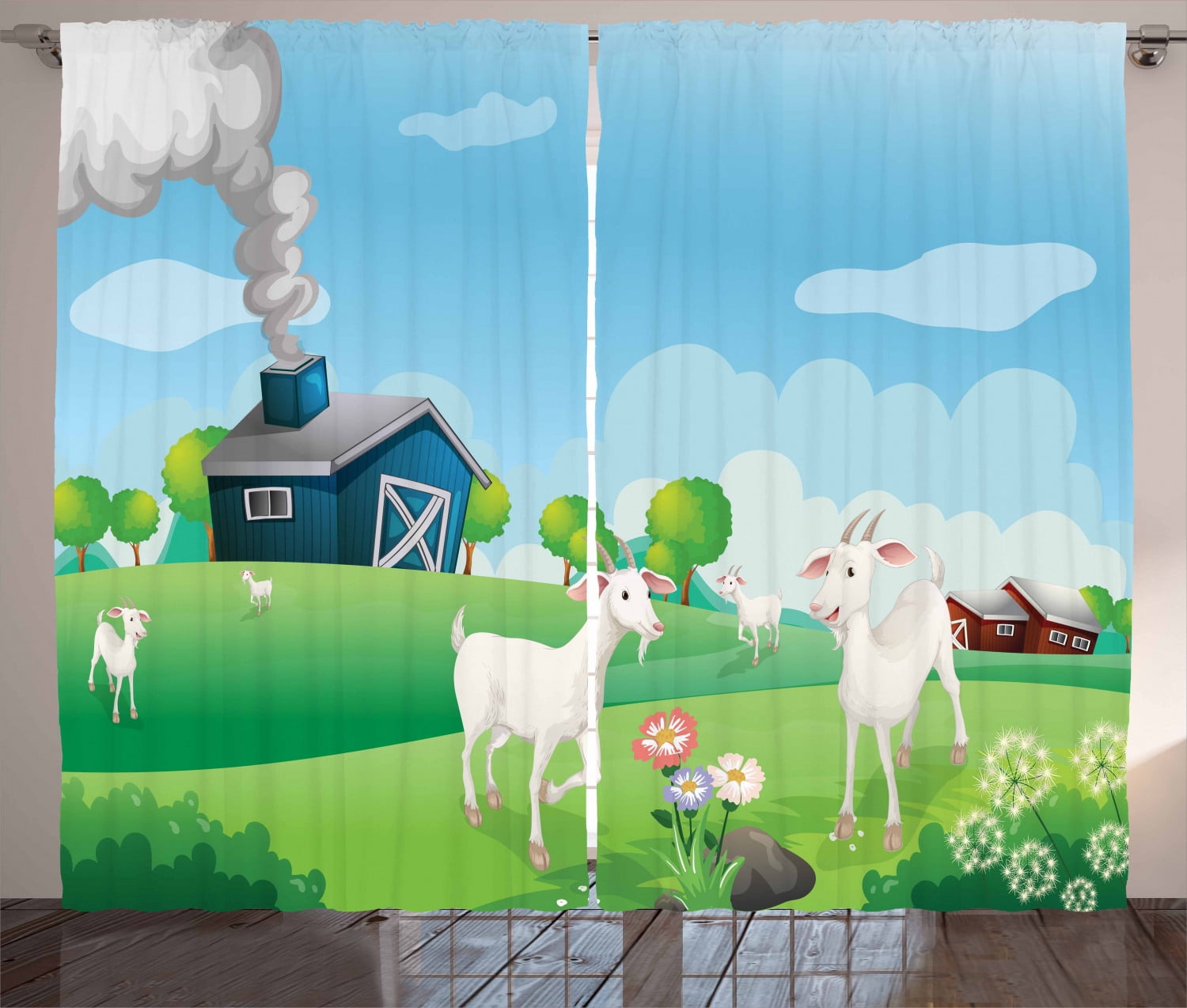 Farmhouse Curtains 2 Panels Set Pleasant Farm Life Illustration