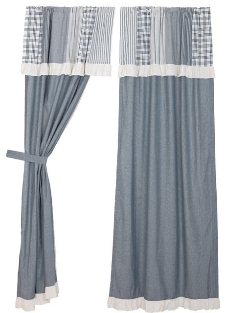 63 L Denim Blue White Ticking Stripe Farmhouse Curtains Sawyer