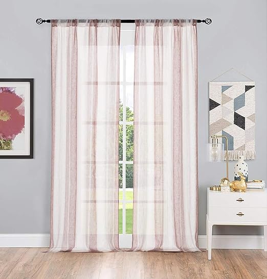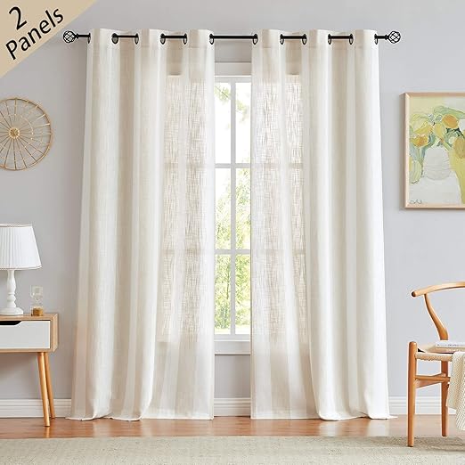 Amazon Com Central Park Sheer Beige And White Stripe Farmhouse