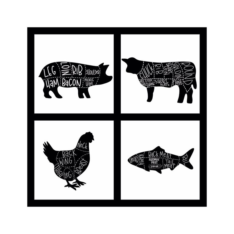 Set Of 4 Butcher Prints Kitchen Art Farmhouse Decor Etsy