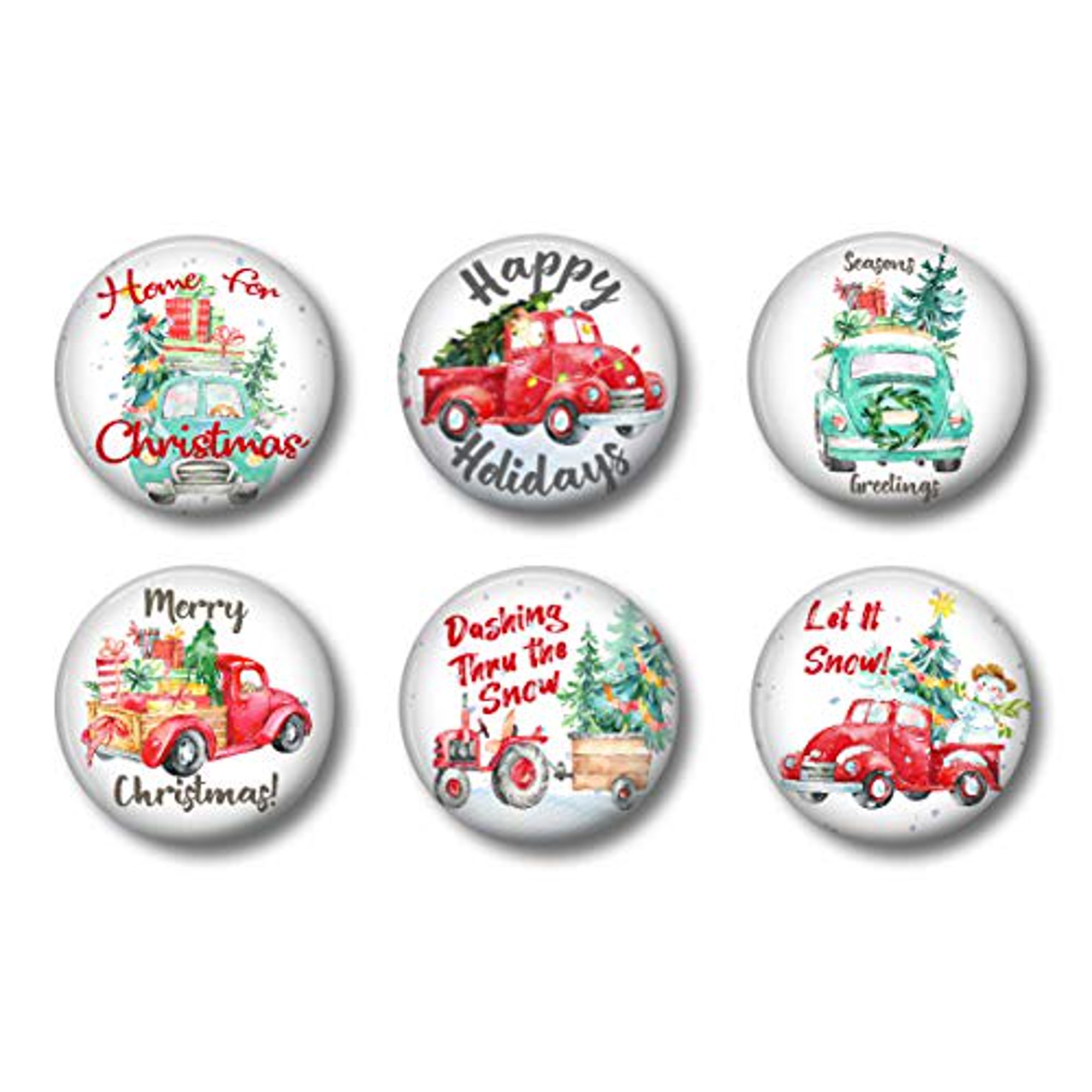 Farmhouse Decor Refrigerator Magnets Old Red Truck Christmas