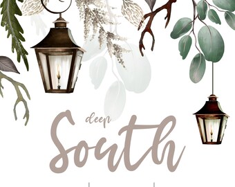 Watercolor Magnolia Wreath Farmhouse Clip Art Sublimation 127586
