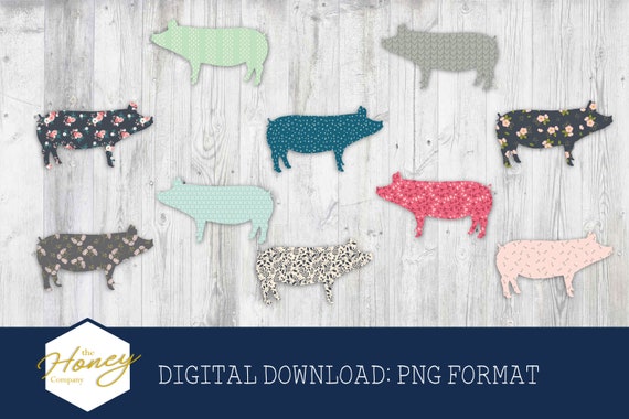 Pig Clipart Png Floral Clip Art Floral Farmhouse Decor Etsy