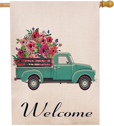 Amazon Com Selmad Summer Flower Truck 28 X 40 House Flag Decorative Farmhouse Decor Spring Large Garden Flag Double Sided Floral Welcome Old Farm Pickup Yard Decoration Rustic Burlap Seasonal Outdoor Flag